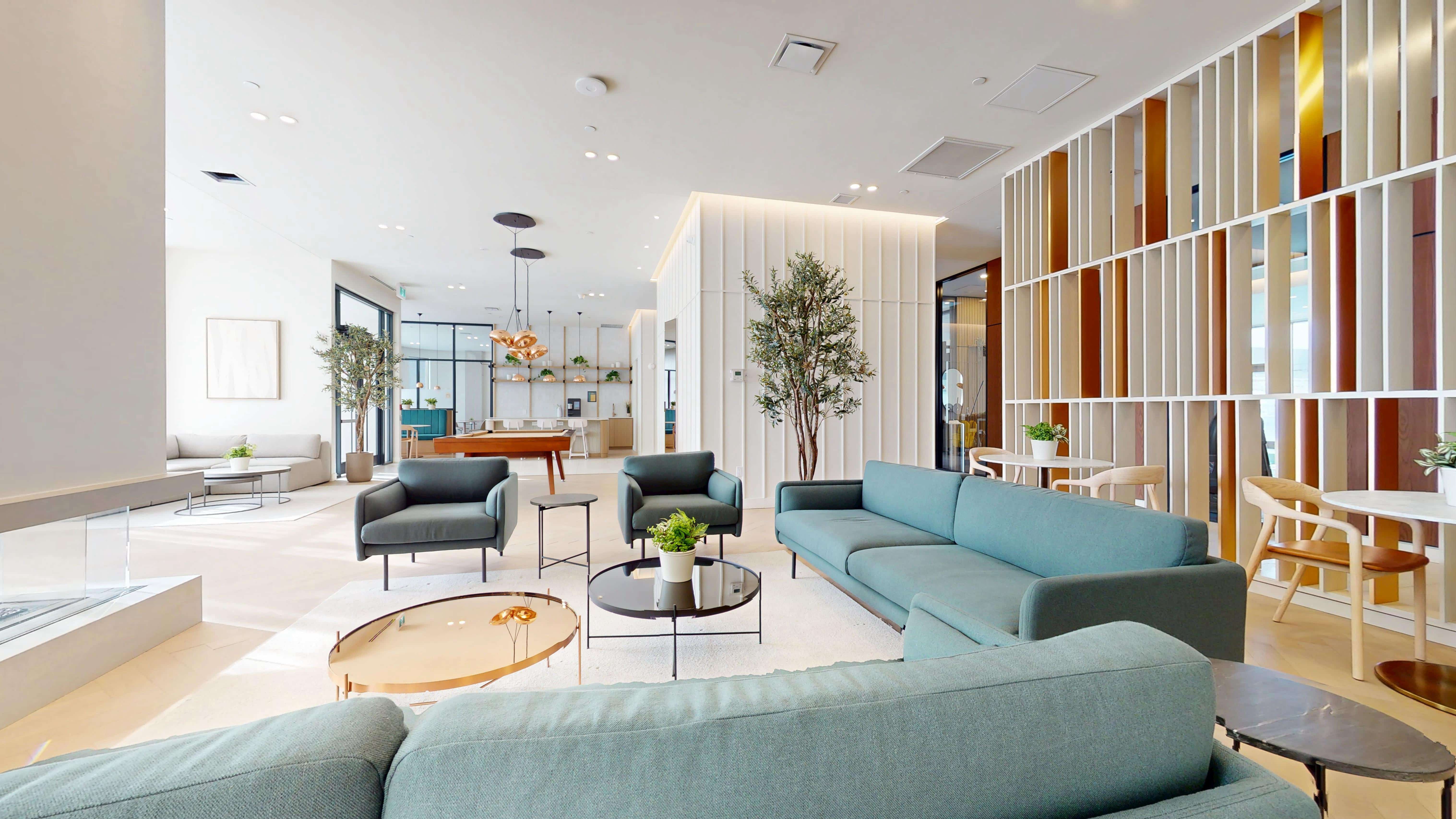 Le pavillon commun est aussi doté d’un centre d’affaires à la fine pointe avec un espace de télétravail, une salle de réception-conférence, un lounge avec foyer, un bar à café et une table de billard, des terrasses invitantes avec BBQ adjacent à la piscine, un salon de lecture avec un vaste assortiment de livres Taschen ainsi qu’une salle dédiée à des soins et des massages.