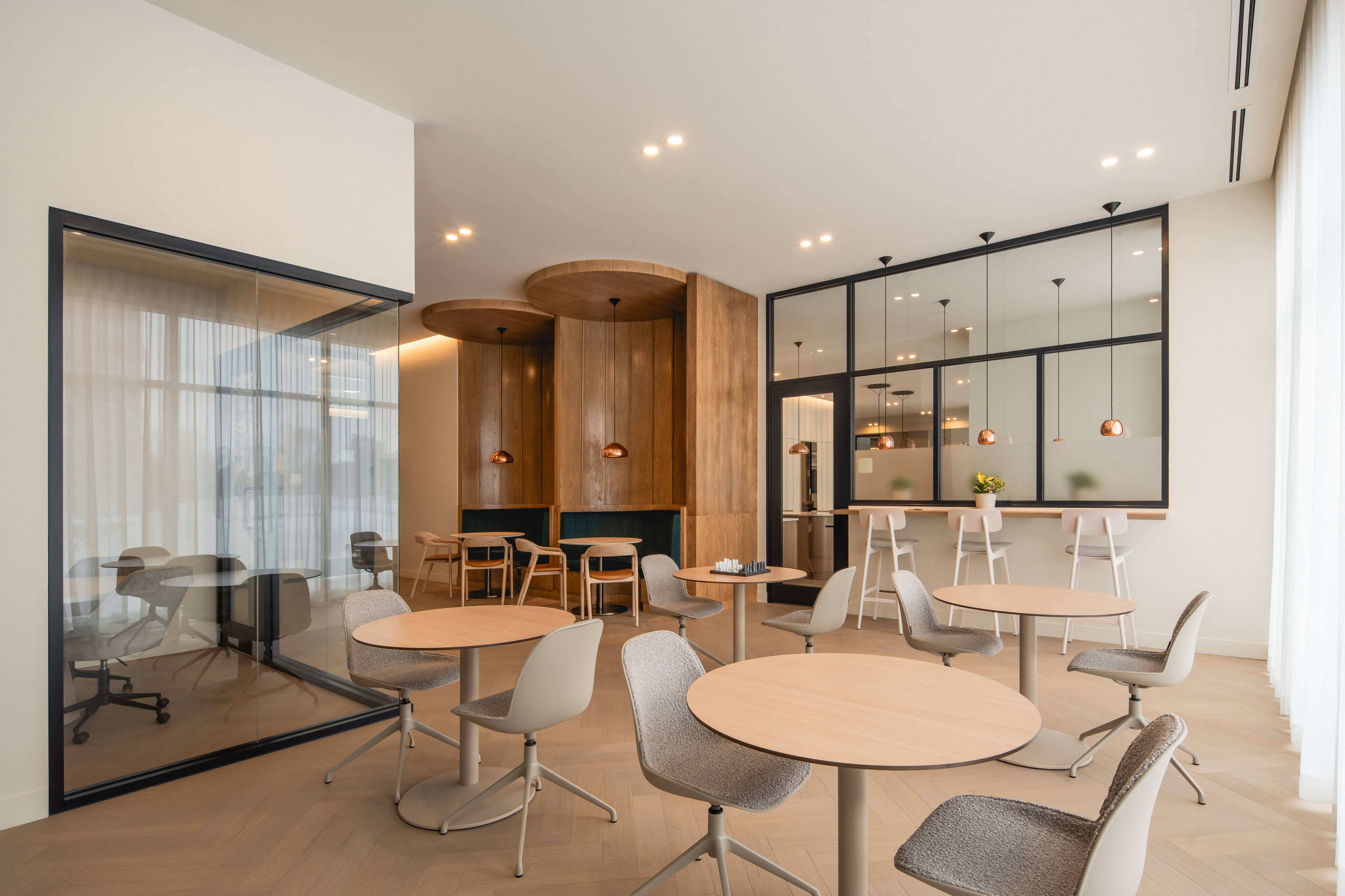 Le pavillon commun est aussi doté d’un centre d’affaires à la fine pointe avec un espace de télétravail, une salle de réception-conférence, un lounge avec foyer, un bar à café et une table de billard, des terrasses invitantes avec BBQ adjacent à la piscine, un salon de lecture avec un vaste assortiment de livres Taschen ainsi qu’une salle dédiée à des soins et des massages.